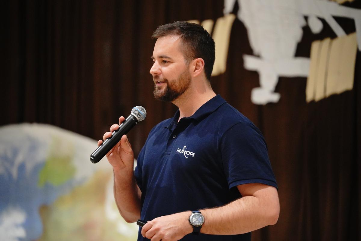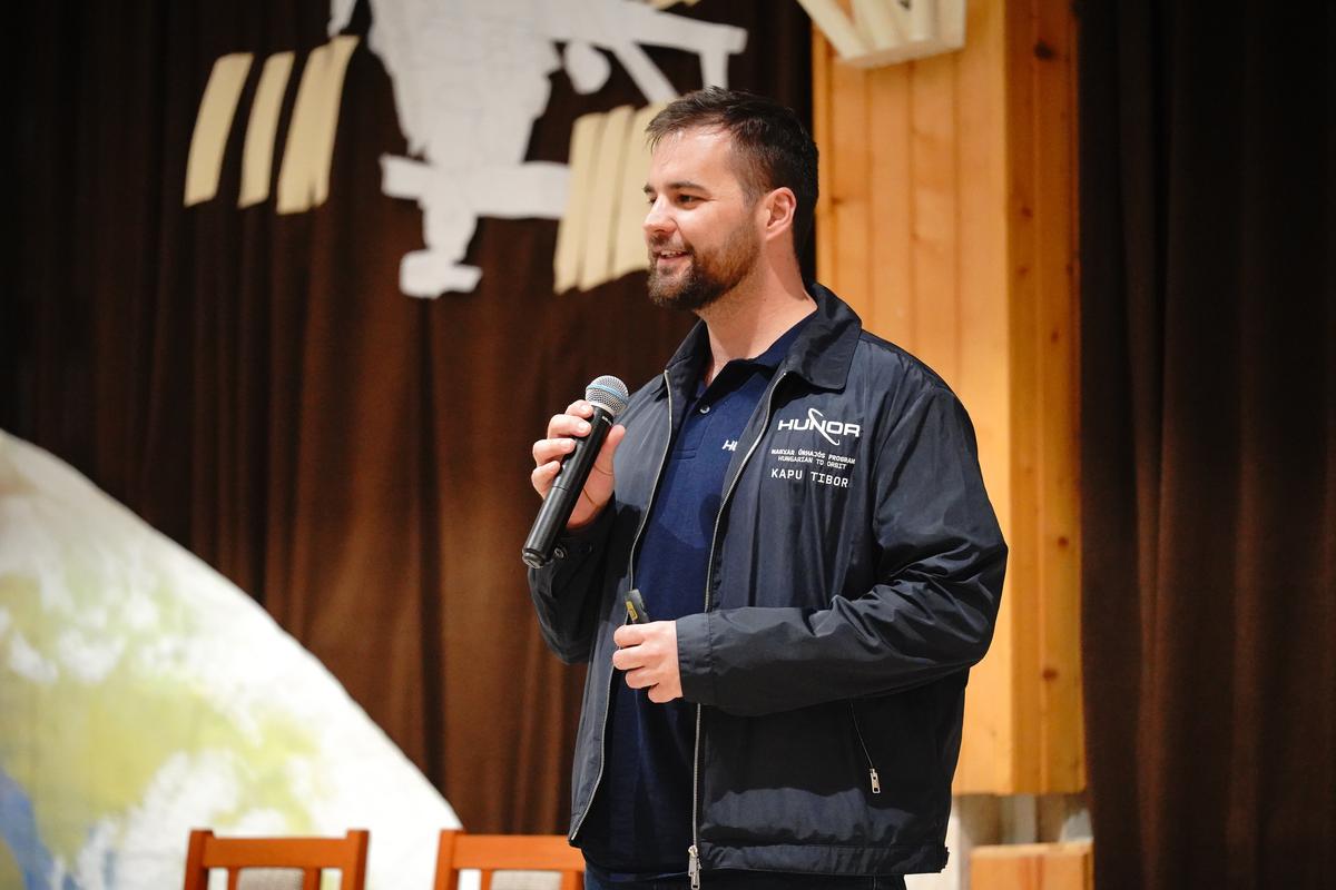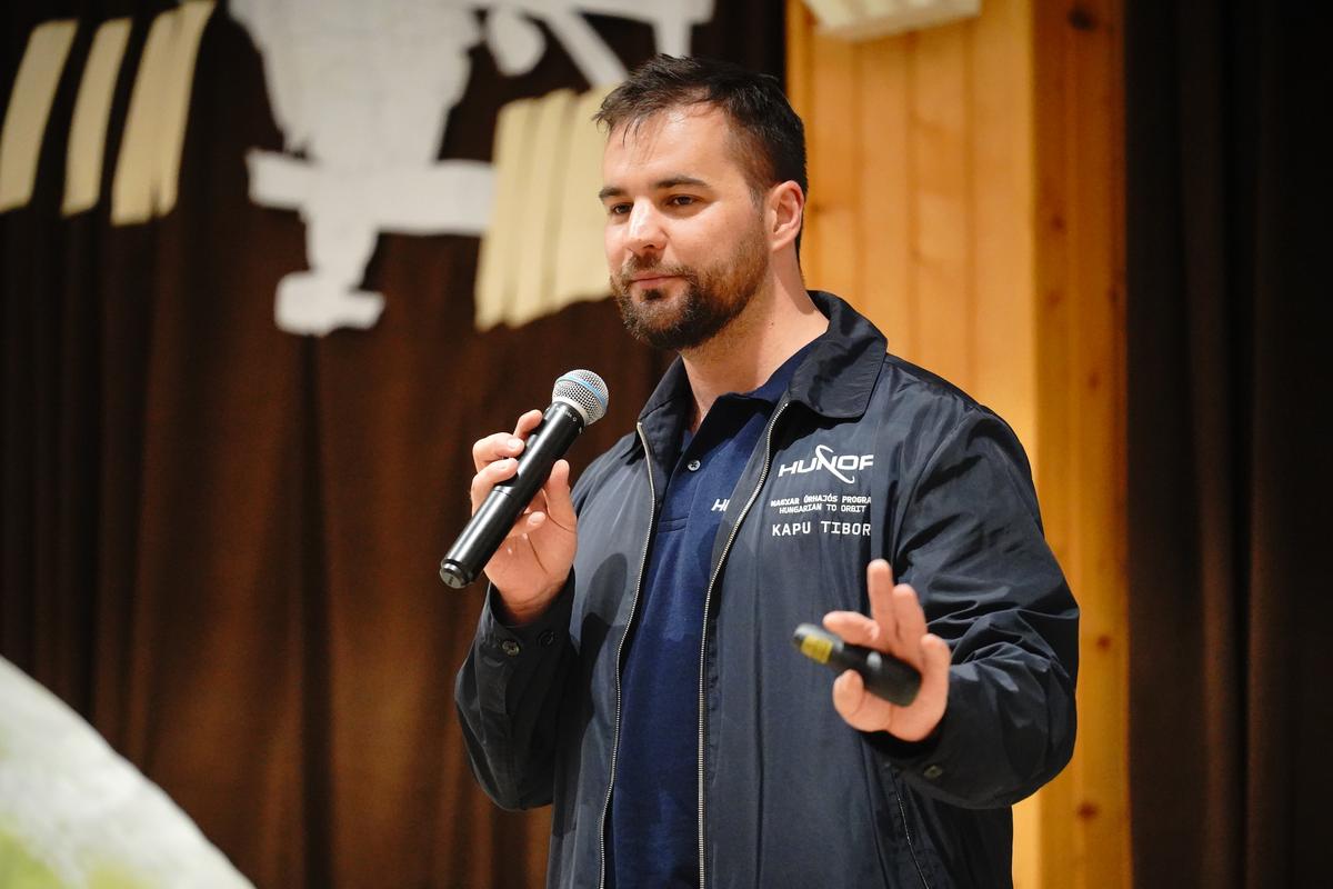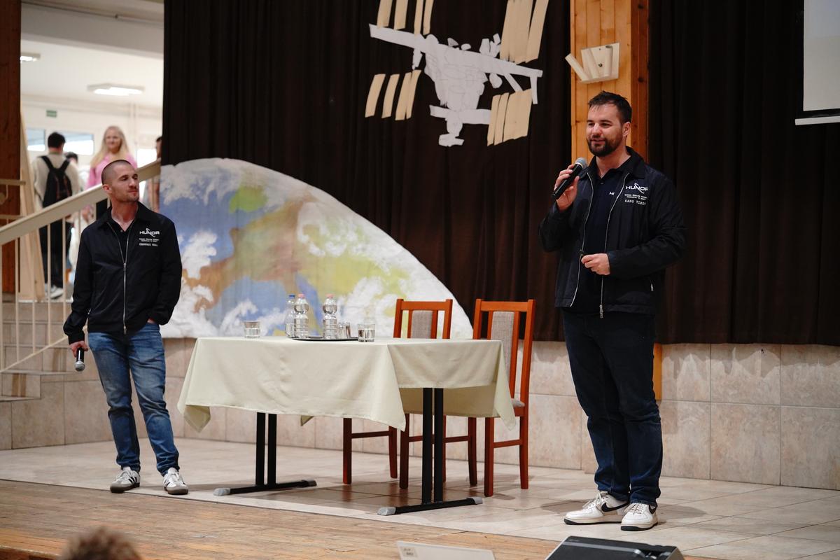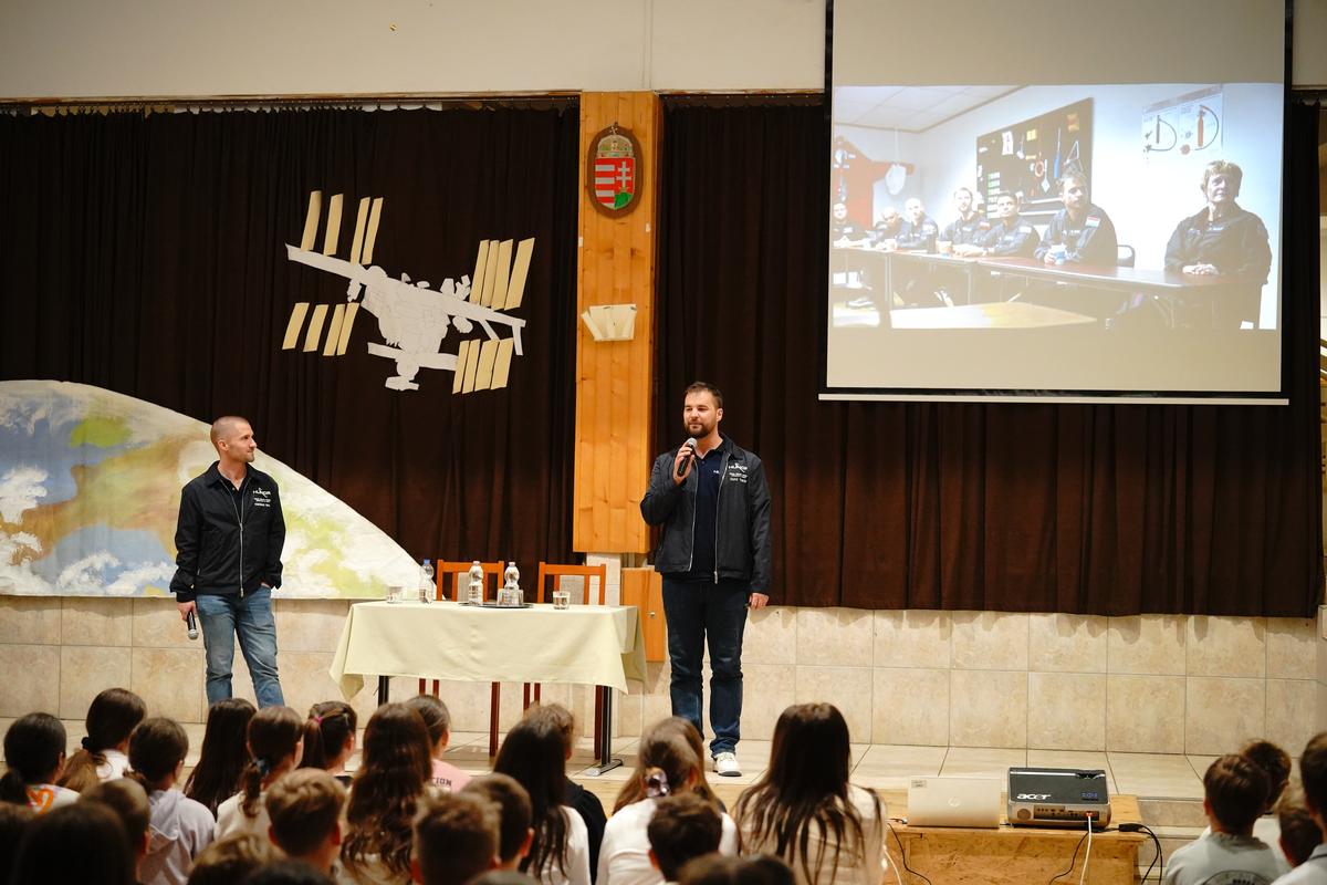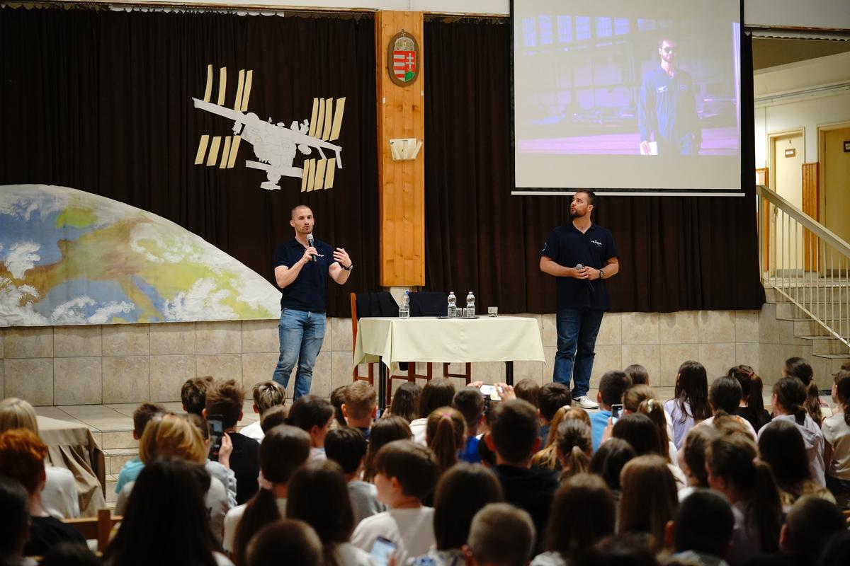 Különleges vendégeket fogadott a Nyíregyházi Egyetem Eötvös József Gyakorló Általános Iskola és Gimnázium április 20-án. Az intézményben a HUNOR – Magyar Űrhajós Program két kiválasztottja, Kapu Tibor kutatóűrhajós és kiképzett kutatóűrhajós társa, Cserényi Gyula tartott interaktív előadást. „Iskolánk kiemelten kezeli a természettudományos tárgyakat, mert hisszük, hogy ezek adják a jövő kutatóinak legfontosabb alapjait” – fogalmazott köszöntőjében dr. Komáromi István igazgató. Kapu Tibor, aki 2025 nyarán közel 20 napot töltött a Nemzetközi Űrállomáson, személyes élményein keresztül hozta közelebb a világűrt a hallgatósághoz. Elárulta, hogy jelentkezését a HUNOR-programba szó szerint az utolsó pillanatban adta le 2022 januárjában, döntése pedig életre szólónak bizonyult.