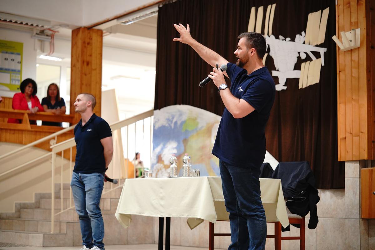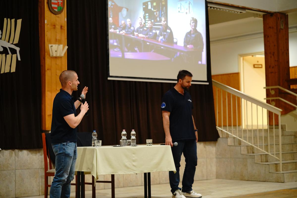 Előadásában nemcsak az élményekről, hanem az űrbéli lét kemény valóságáról is beszélt. „A súlytalanság miatt az izmok leépülnek, a csontok sűrűsége csökken, a szív is kisebb lesz, és még a vérmennyiségünk is csökken” - mondta, hozzátéve, hogy az űrben érő hatások döntő többsége káros az emberi szervezetre. „Az izolációs gyakorlat volt talán a legkeményebb. Hajnalban, kialvatlanul kellett újra és újra teszteket megoldanunk, és akkor egy időre a matematikával való kapcsolatom is megromlott” - jegyezte meg humorosan. Elmondta azt is, hogy kutatóként magyar kísérleteket végzett az űrben, ami különösen nagy felelősség volt számára, hiszen ezek előkészítésén a kutatók hosszú éveket dolgoztak. Cserényi Gyula a kiképzés földi kihívásait hozta közelebb a közönséghez. A túlélési tréningek során a legextrémebb helyzetekre is felkészítették őket: „Megtanultuk, hogyan gyújtsunk tüzet gyufa nélkül, hogyan tisztítsunk vizet, és hogyan boldoguljunk akár az erdőben, a sivatagban a nyílt tengeren, vagy egy lakatlan szigeten.” Egy emlékezetes gyakorlatot is felidézett: „Névsor szerint haladtunk, így nem teljesen önként, de én ugrottam ki elsőként több méter magasból egy helikopterből a Tiszába” - idézte fel mosolyogva. Az előadáson a diákok nemcsak hallgatói, hanem aktív résztvevői voltak a programnak, hiszen az űrhajósok kérdéseikkel interakcióra ösztönözték az érdeklődő diákságot. Ezzel vált egyszerre tudományossá és szórakoztatóvá az előadás.