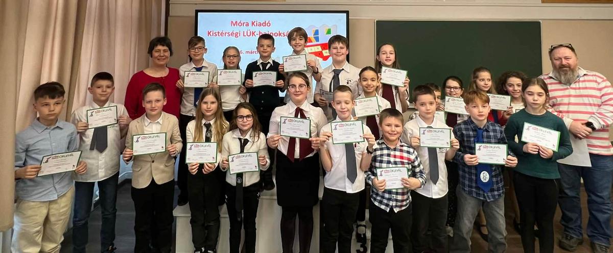 A Móra Kiadó által rendezett LÜK-bajnokság kistérségi fordulójára került sor 2026. 03.05-én az Eötvös Gyakorlóiskolában. A versenyzőknek 3-3-3 feladatsort kellett megoldaniuk logika, magyar és matematika témakörökben. A versenyen három korcsoportban 22 tanuló vett részt, iskolánkat 9 kisdiák képviselte. Kitartó munkájukkal, ügyességükkel öten kivívták a továbbjutás lehetőségét a következő, területi fordulóba, mely Hatvanban lesz 2026 májusában. Az okleveleket Bertalan András, a LÜK-bajnokságok szervezője adta át.
